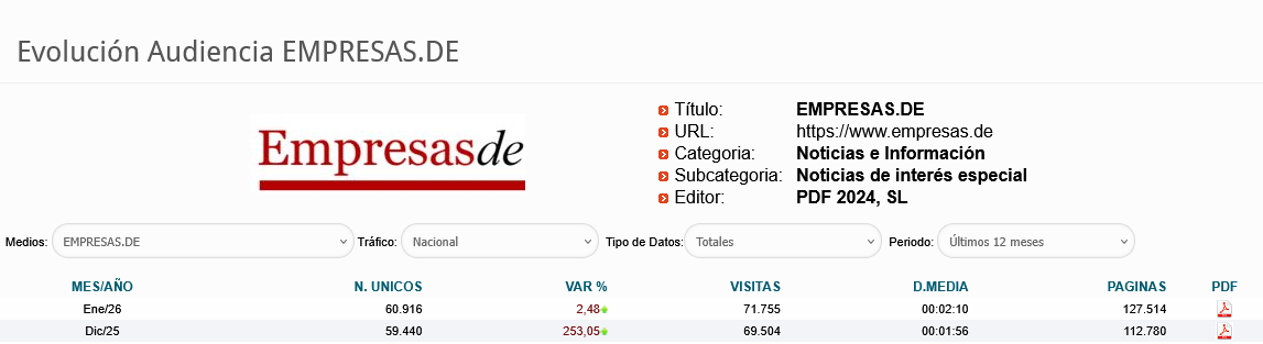 3. Por su parte, OJD otorgó a las tres cabeceras de «Empresas de» (Lorca, Cartagena y Murcia) 59.440 usuarios únicos y 112.780 páginas vistas en diciembre; y en enero, 60.916 u.u. y 127.514 páginas vistas, como se puede comprobar en su página web oficial.