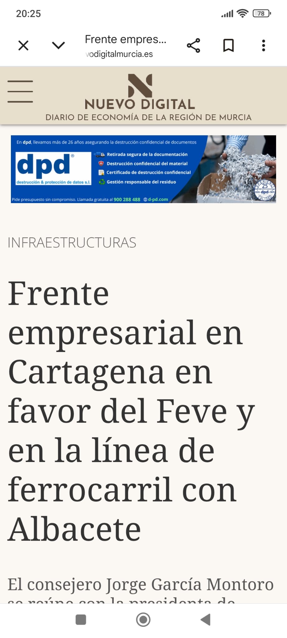 Eso, teniendo en cuenta dos cosas. La primera, que El Nuevo Digital Murcia se construyó (así lo quisieron sus fundadores, y lo sé porque lo construí yo) dando prioridad absoluta a la pantalla del PC e ignorando a los lectores del móvil, que son mayoría. Y segundo, nosotros adaptamos los banners para que se vean bien en todos los dispositivos. En este caso, dividiendo el banner en varias pantallas rotatorias para que se vea bien el texto indicado por el cliente.