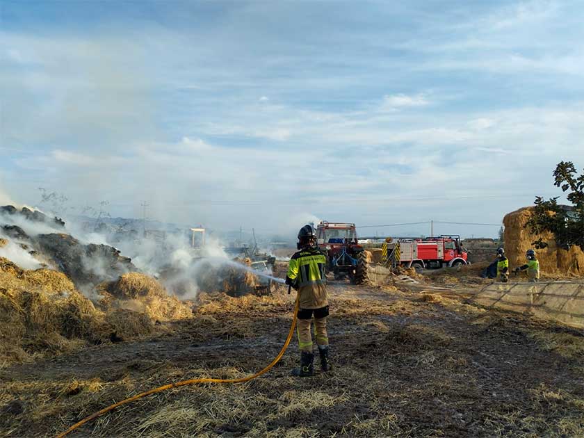 En el incendio, producido en un lugar con resto de poda y balas de paja que han servido de material combustible para acrecentar el fuego, han intervenido dotaciones de un total de cuatro parques de bomberos del CEIS.
