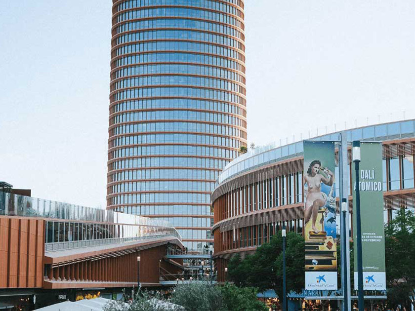 Torre Sevilla, inaugurada en 2018, es uno de los edificios más imponentes de la ciudad, con una superficie construida de 218.000 metros cuadrados y una ocupación que supera el 95%. El complejo está compuesto por oficinas de alto nivel, entre las que figuran grandes empresas como Ayesa, Cuatrecasas, Orange, Deloitte y EY, un hotel de lujo Eurostars Torre Sevilla de 25.000 metros cuadrados y un centro comercial de 26.700 metros cuadrados. Además, cuenta con un aparcamiento subterráneo de 2.900 plazas y un área verde de 40.000 metros cuadrados.
