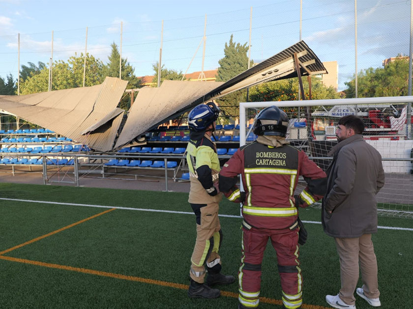 Desde el Área de Deportes se ha decidido el cierre de instalaciones deportivas, entre ellas el campo municipal de fútbol de Ciudad Jardín. Esta medida, adoptada de forma consensuada con los clubes, evitó daños personales tras el colapso de una pérgola del graderío en la instalación. El concejal de Deportes, José Martínez, ha supervisado la situación junto a bomberos municipales.
