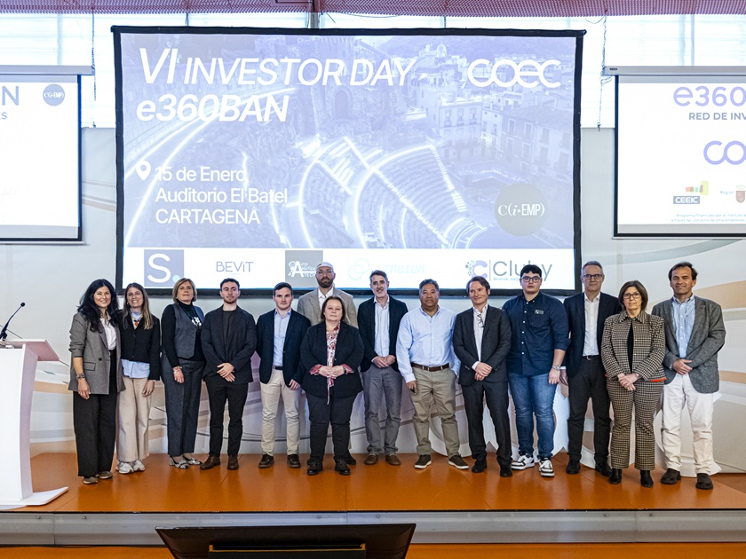Cluby, Limbium Makers, Automatiza Tech, Seidoc y Bevit Organic explicaron sus modelos de negocio y respondieron todas las preguntas de los inversores en la jornada de la Red de Inversores Privados e360BAN que organiza la Confederación Comarcal de Organizaciones Empresariales de Cartagena (COEC), en colaboración con el Instituto de Fomento de la Región de Murcia (Info) y el Centro Europeo de Empresas e innovación de Cartagena (Ceeic).
