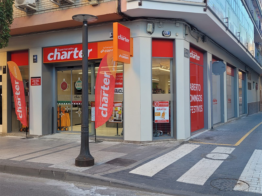 Consum ha inaugurado un nuevo establecimiento de su franquicia Charter en Alcantarilla, situado en la Calle Mayor, 15. Con esta apertura, la red Charter alcanza cerca de 500 supermercados, con 25 nuevos locales inaugurados en lo que va de año, consolidando su presencia en poblaciones pequeñas, barrios urbanos y zonas turísticas.