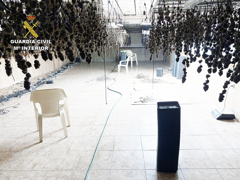 Previa autorización judicial, la Benemérita llevó a cabo el registro del establecimiento y de la vivienda, domicilio de uno de los ahora detenidos, ubicado en la planta superior del edificio. El registro se saldó con la localización de un total de 1.000 plantas de marihuana en proceso de secado y un kilogramo de cogollos listos para su venta.