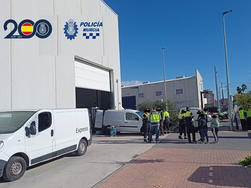 Agentes de la Policía Nacional, de la Policía Local de Murcia y funcionarios de la Inspección de Trabajo y Seguridad Social han detenido a 19 personas tras una inspección en una nave dedicada al reparto masivo de paquetería situada en la pedanía de El Palmar.