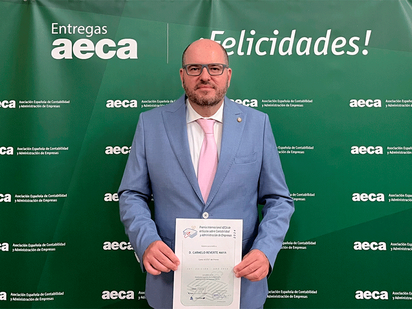 Nuevo premio AECA para el catedrático del área de Economía Financiera y Contabilidad de la UPCT Carmelo Reverte. La Asociación Española de Contabilidad y Administración de Empresas ha distinguido al profeso en su XXX Edición del Premio Internacional AECA de Artículos sobre Contabilidad y Administración de Empresas por su trabajo ‘La simbiosis entre Inteligencia Artificial e Información ASG: ¿Poniendo orden el caos?’.