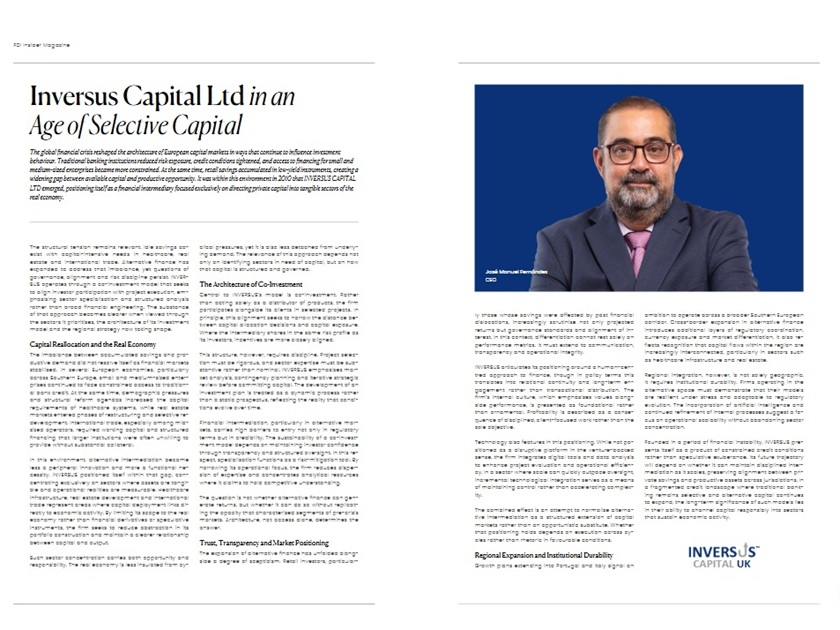 Y concluye que «Inversus Capital Limited combina un análisis riguroso, experiencia operativa y una gobernanza transparente para ofrecer estructuras de inversión resilientes y valor a largo plazo».