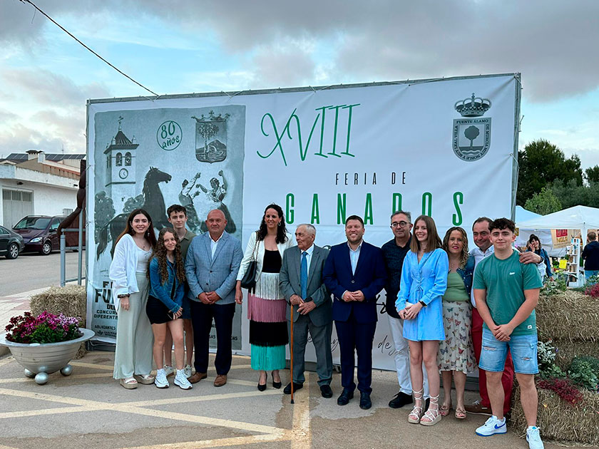 La 18º edición de la Feria de Ganados de Fuente Álamo, presidida por la alcaldesa Juana María Martínez, ha contado con la asistencia del director general de Producción Agrícola, Ganadera y Pesquera, Juan Pedro Vera, y el cronista de la villa, Andrés Nieto.