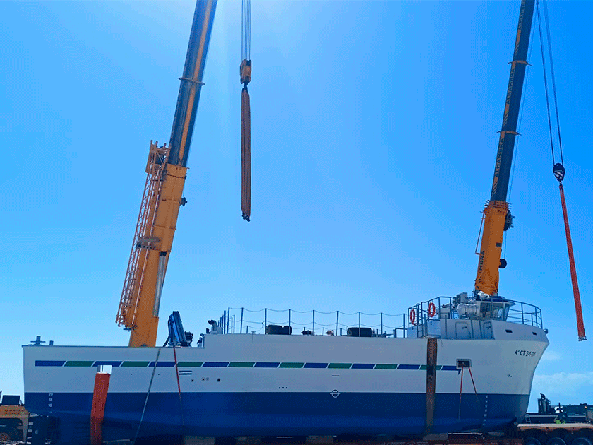 Botadura del buque ‘Terreros II’, en julio de 2023, en el puerto de Carboneras