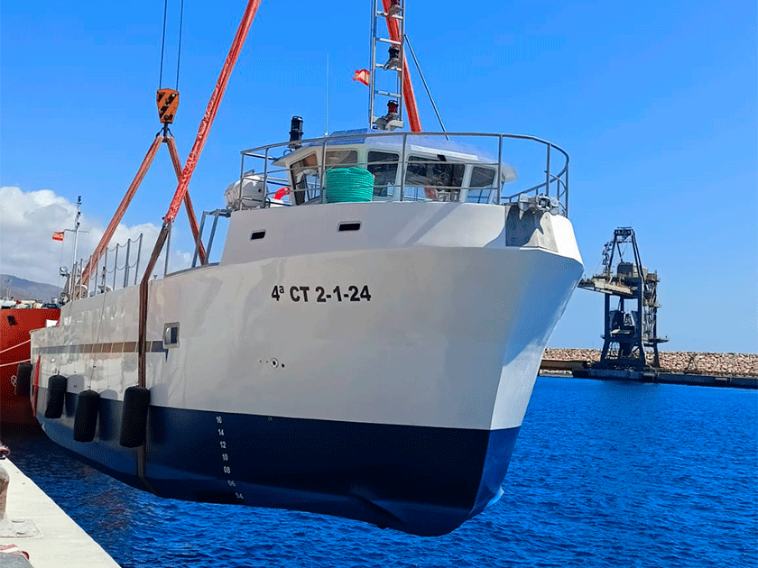 Botadura del buque ‘Terreros II’, en julio de 2023, en el puerto de Carboneras
