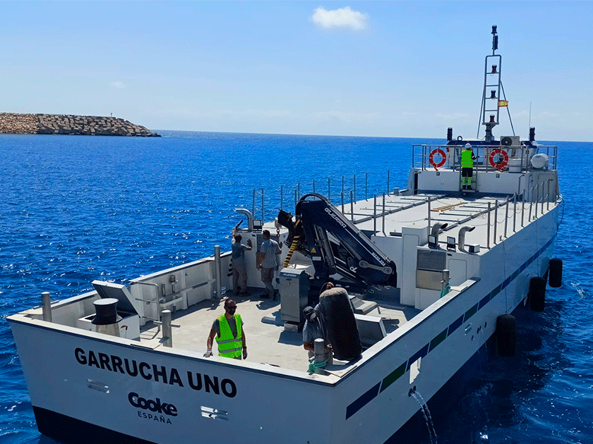 El ‘Garrucha Uno’, un buque de alimentación que operará en Villaricos (Almería), cuenta con 24 metros de eslora y 7 metros de manga, así como con una capacidad de carga de 108 toneladas de pienso, y está equipado con tecnología de última generación. Ha sido financiado, según informa Cooke España, en el marco del Fondo Europeo Marítimo de Pesca y de Acuicultura (FEMPA), con el apoyo de la la Junta de Andalucía.