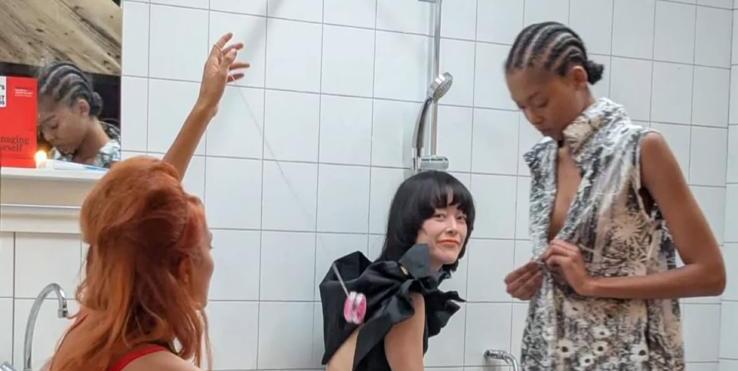 Para la ocasión, la creadora de 34 años sacó su desfile a la calle, «para el disfrute de todos los públicos». En concreto, mostró las prendas desde el interior de un camión y frente a un típico café parisino del barrio de Le Marais. Completan la performance la recreación de un cuarto de baño de impoluto blanco desde donde exhibió 24 conjuntos: vestidos, prendas de punto, chaquetones, pantalones, entre otras propuestas, en los que el color fue uno de los grandes protagonistas, junto con estampados florales, de rayas y rombos.