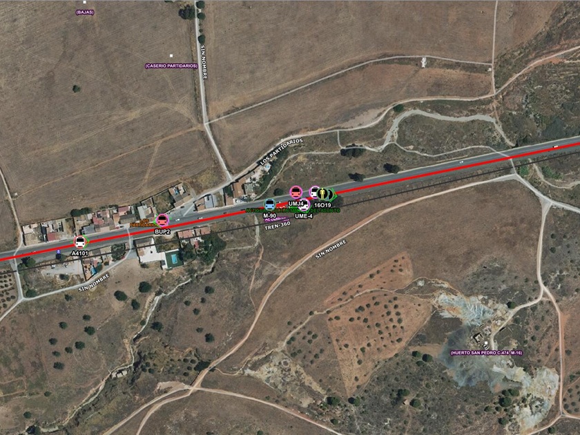 El tren salió a las 11:40 horas de Cartagena y tenía previsto llegar a Los Nietos a las 12:15 horas, si bien «una grúa invadió el gálibo y rozó lateralmente la unidad», según la misma fuente.