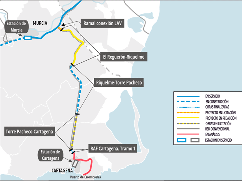 El futuro tramo ferroviario, de 9 km de longitud, supone impulso decisivo a la conexión de alta velocidad entre Murcia y Cartagena, las dos principales de la Región y, además, permite conectar la ciudad portuaria al Corredor Mediterráneo.