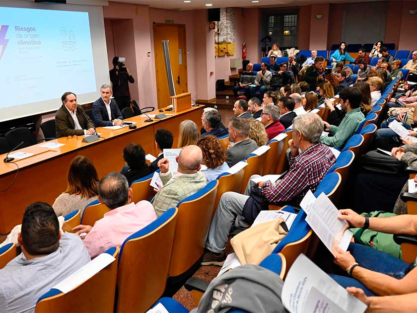 El director general de Seguridad y Emergencias de la CARM, Pedro Vicente, y el director de la Cátedra, el profesor Ismael Crespo, han participado junto al profesor Carmelo Conesa y otros expertos de la Universidad de Alicante y Murcia como Jorge Olcina, Marco Turco, Salvador Gil Guirado y Alfredo Pérez Morales en esta jornada destinada a focalizar los resultados obtenidos en cada uno de los apartados del texto. El informe incluye proyecciones de futuro que ayudarán a la planificación y a la toma de decisiones.