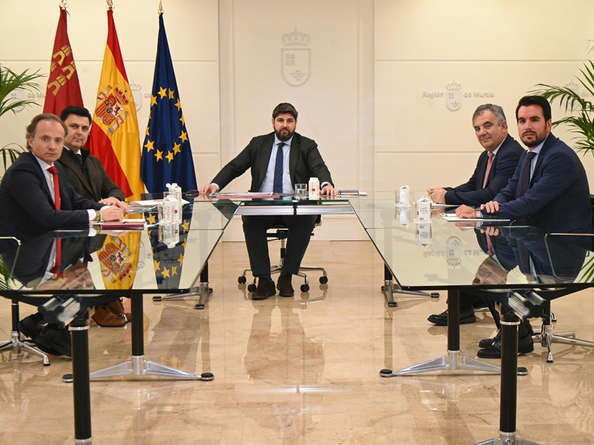 El presidente de la Región de Murcia, Fernando López Miras, ha recibido este martes en el Palacio de San Esteban a los organizadores de Unvex 2026, el mayor encuentro de drones y sistemas no tripulados, que se celebrará los días 16 y 17 de septiembre en la Base Aérea de San Javier, junto a la Academia General del Aire.