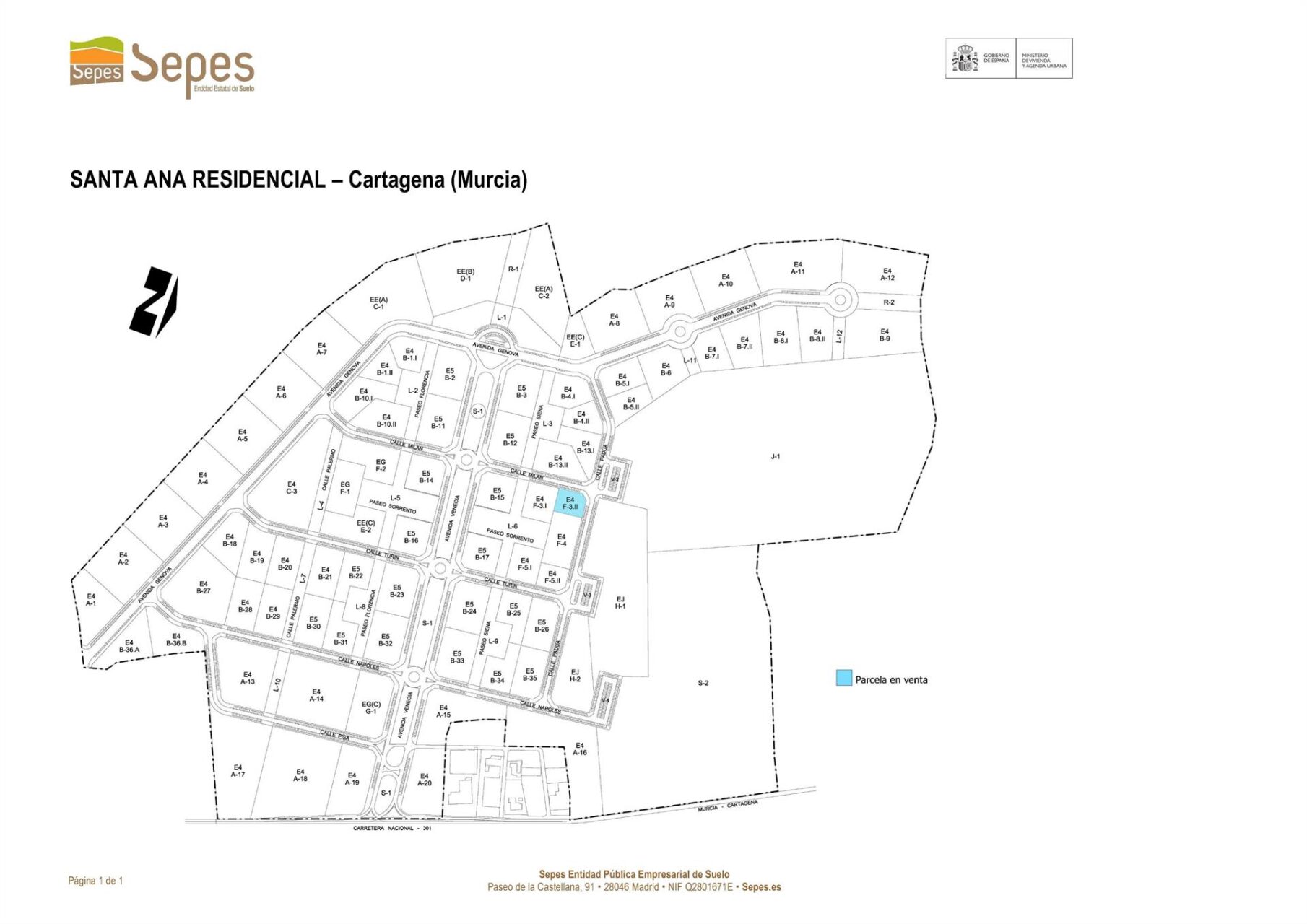 La Entidad Pública Empresarial de Suelo, Sepes, adscrita al Ministerio de Vivienda y Agenda Urbana, ha licitado la comercialización de una parcela en la actuación industrial Santa Ana Residencial, en el municipio de Cartagena.